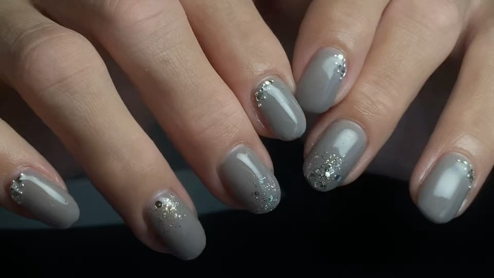 グレーの落ち着きに、ラメとストーンの輝きをプラスして、