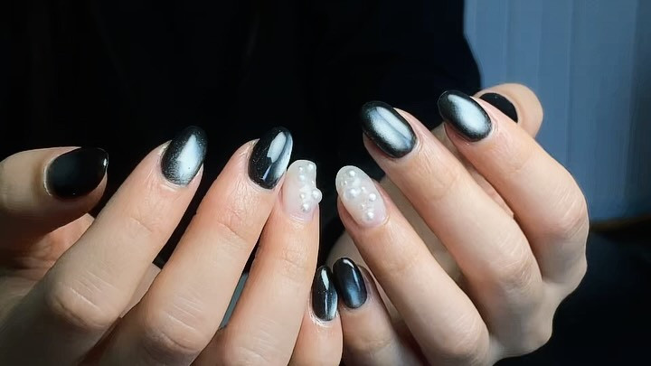 深みのあるブラックに、光がスッと流れるマグネットの輝き…指先