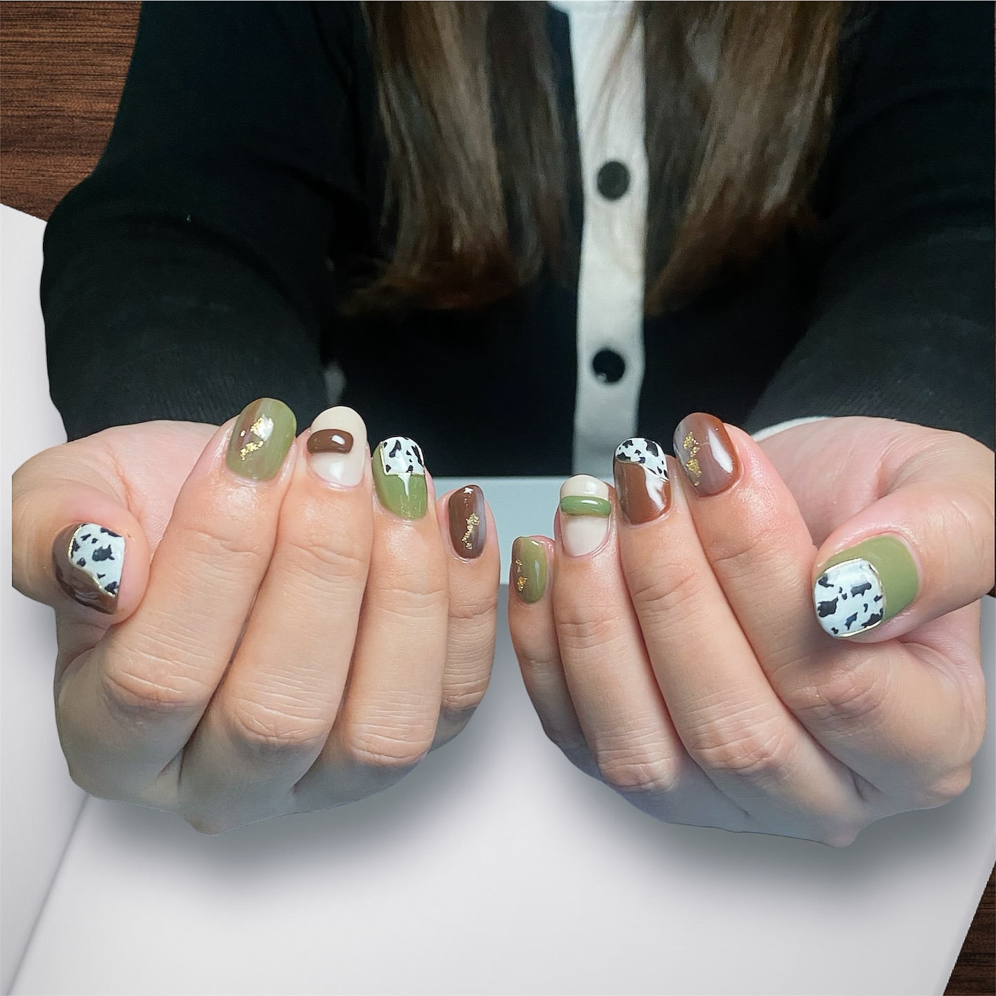 秋っぽくお任せで✨秋の持つ深みを爪先にギュッと詰め込んで、牛
