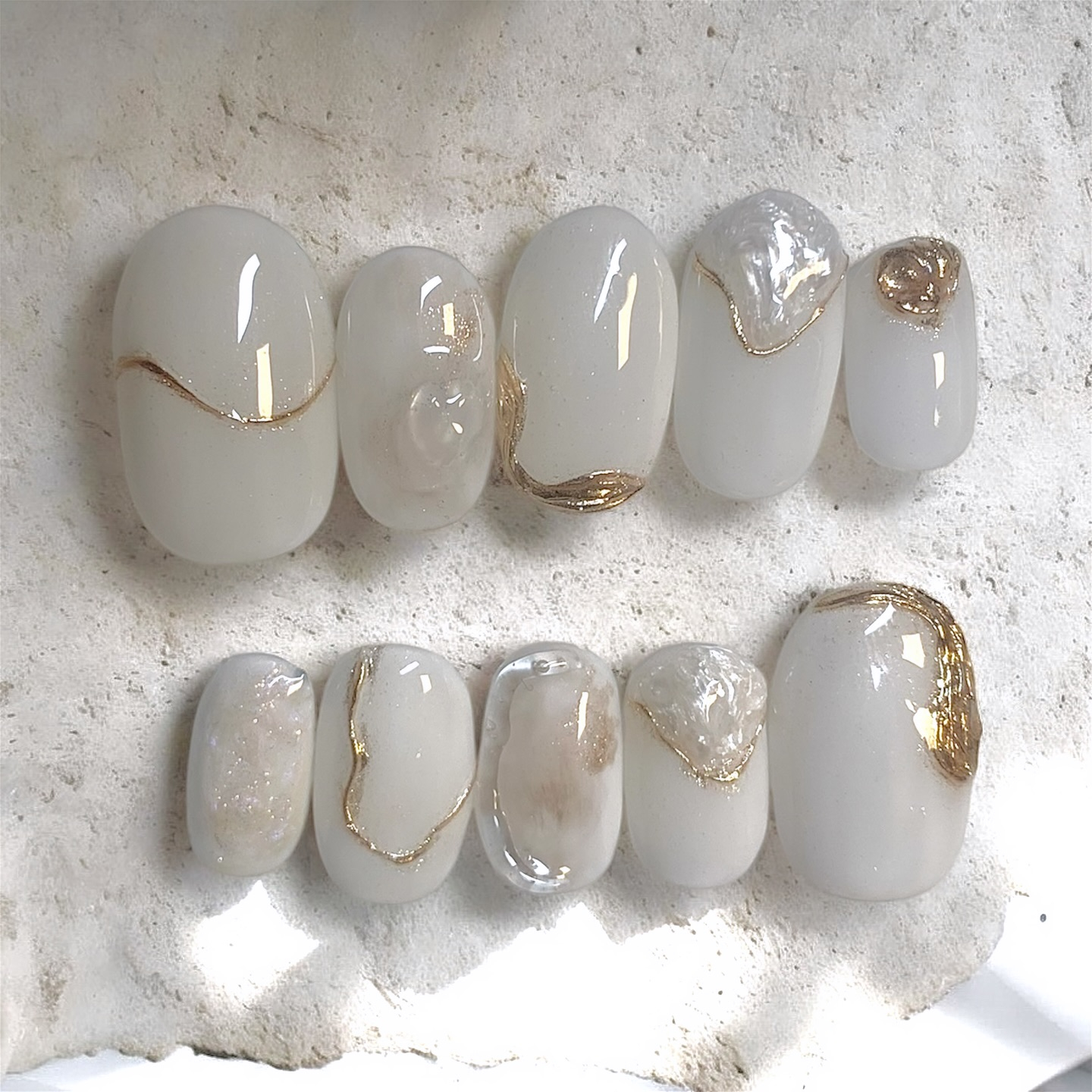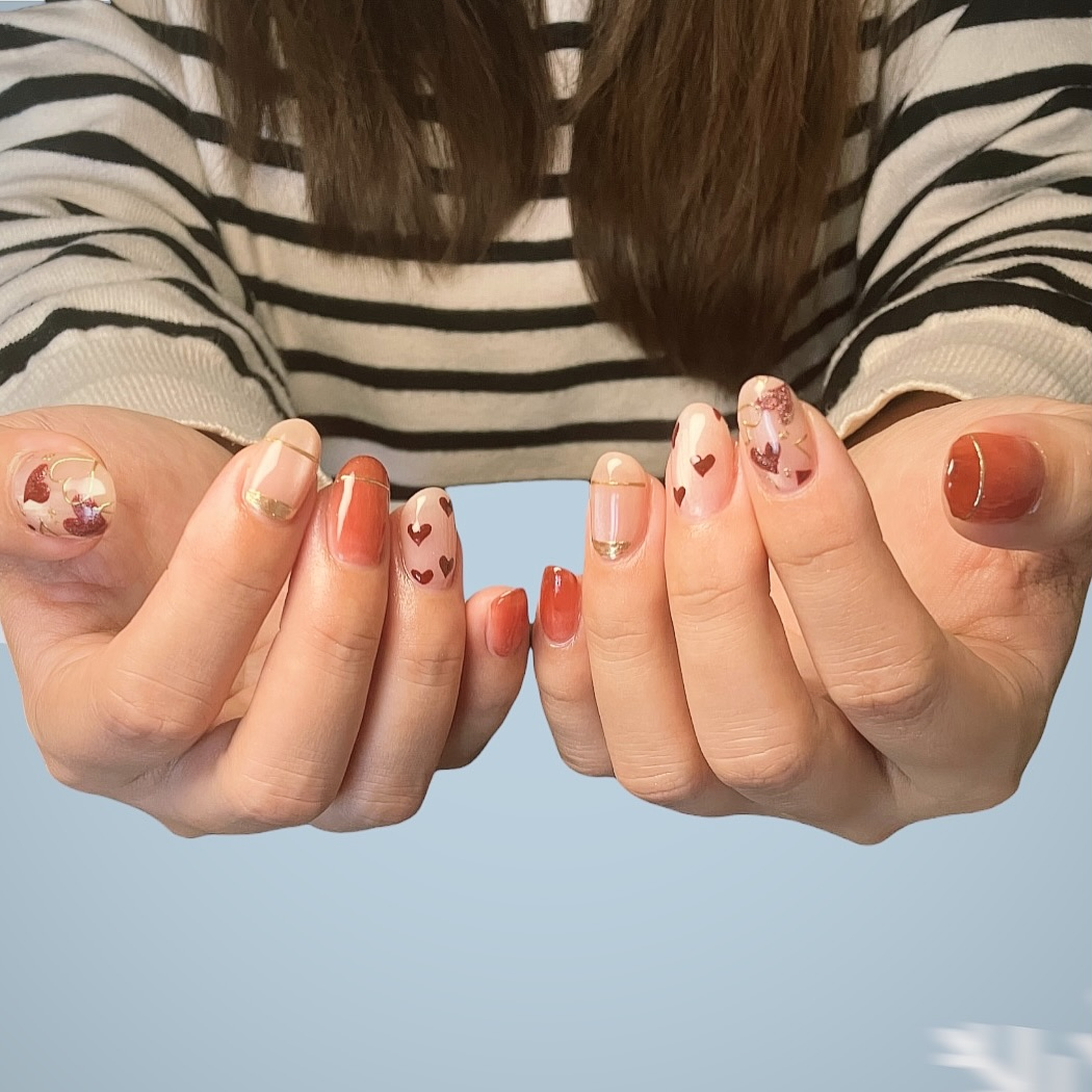 お客さまからのご依頼で、オーダーネイルチップを制作しました ぷるんとしたミルキーホワイトに、流れるようなゴールドのアート✨ 立体感のあるデザインで、指先がぐっと華やかに 今回は両面テープで貼り付けるタイプなので、 ネイル […] 色で遊ぶって、楽しい パステルの紫とターコイズに、うねうねラインがアクセント 左右で違うデザインなのに、ちゃんと統一感があるのがポイント✨ 写真映えもばっちりだから、SNSにもぴったり “全部違うのに、ちゃんとまとまる” ブラウン×ゴールドのニュアンスアートが、指先にこなれ感をプラス 冬のファッションにもぴったりな、写真映えネイルです❄️ うるん、と光をまとったヌーディーピンクのワンカラー✨ 色味をそろえることで、指先のラインがより美しく見えて、手元全体がふわっと明るくなる シンプルなのに、なんだか品がある仕上がりです 毎日をちょっと優しくしてくれるネイル […] 潔く、でも遊び心は忘れない。 パステルピンク×ホワイトの変形フレンチに、パールのきらめき✨ モードな雰囲気もポップに楽しめちゃう 冬のファッションにぴったりな、抜け感と品のあるデザインです 「大人かわいい」を叶える指先、 […] がんばる毎日に、ちょっとしたごほうびを この冬は、うるうるピンクで指先から癒されてみませんか? 手元を見るたび嬉しくなる✨ そんな“心に効くネイル”を心がけてお届けしています️ おでんくんの世界に飛び込んでみた キャラクターたちがちょこんと爪に座って、毎日を応援してくれる キャラクターがのった爪はどれも「かわいい!」 あなたの“好き”をぎゅっと詰め込んだ、世界にひとつのネイルを一緒につくりましょ […] ハートにお花にゴールド…ぜんぶ主役級✨✨ 「今日はどんな気分?」に合わせて、指先からテンションUP⤴️ おしゃれも気分も、ぜんぶ盛り上げちゃうデザインがここに ✨ツヤ感たっぷりのパープルネイル シンプルだけどちゃんと可愛い、そんな“ちょうどいい”ネイルが人気です ほんのりフラッシュが光る絶妙カラーは、どんなファッションにもぴったり