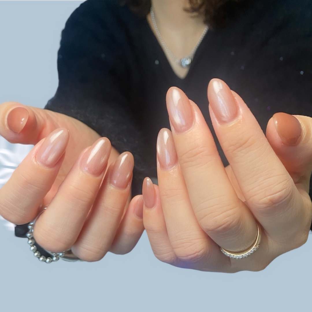 うるん、と光をまとったヌーディーピンクのワンカラー✨