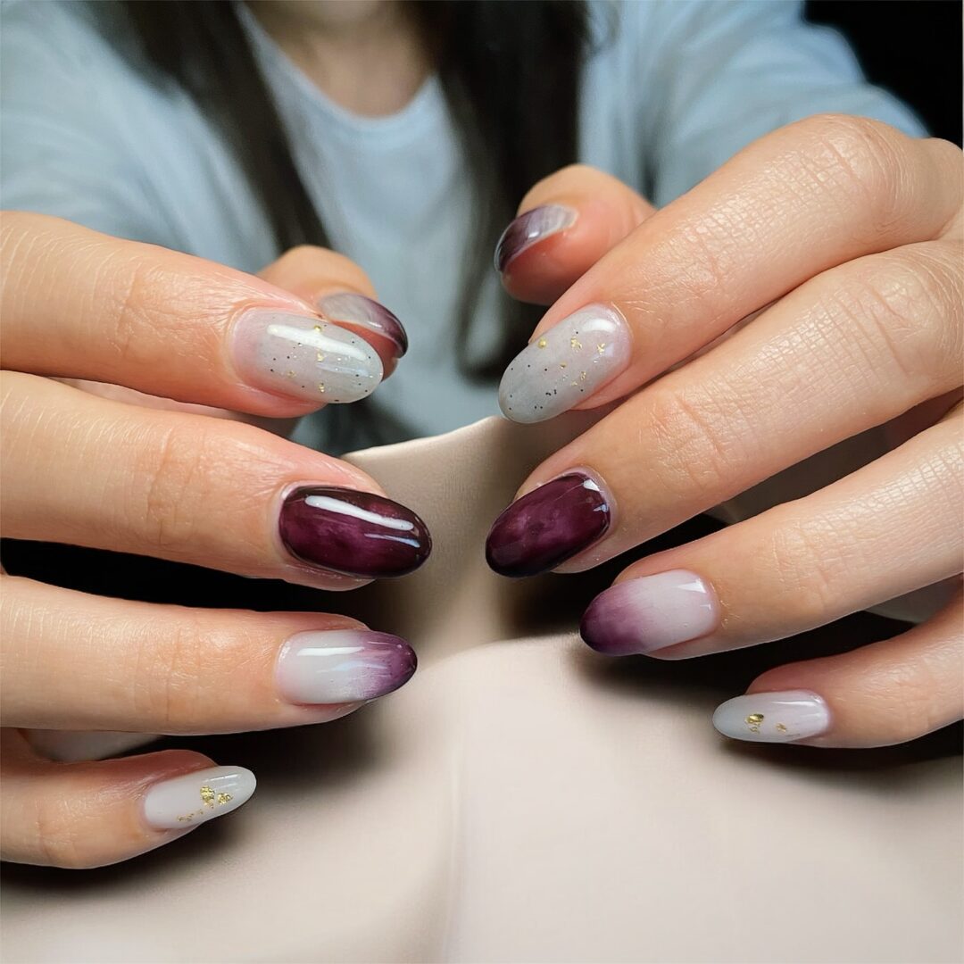 くすみカラーのグラデーションに、ふわっと光るゴールドを入れて✨