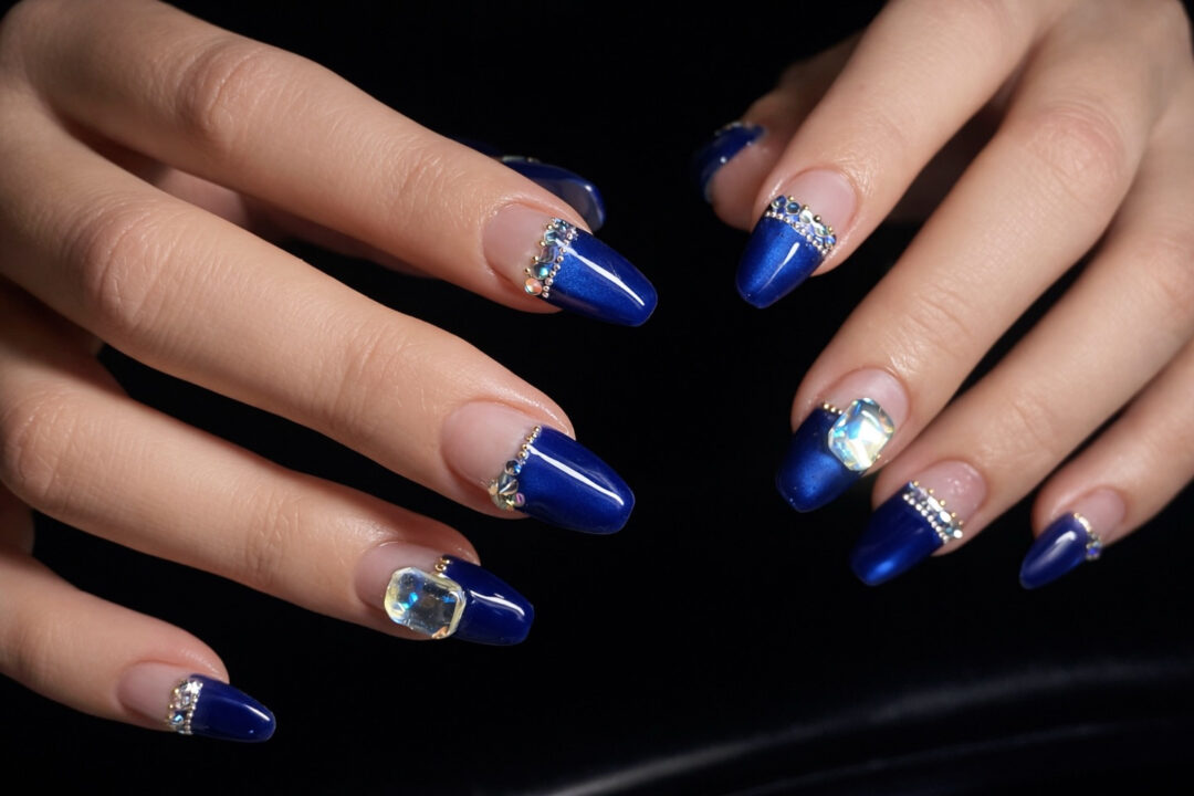 深いブルーの艶とストーンの輝きが、とても上品に指先を彩ってくれました