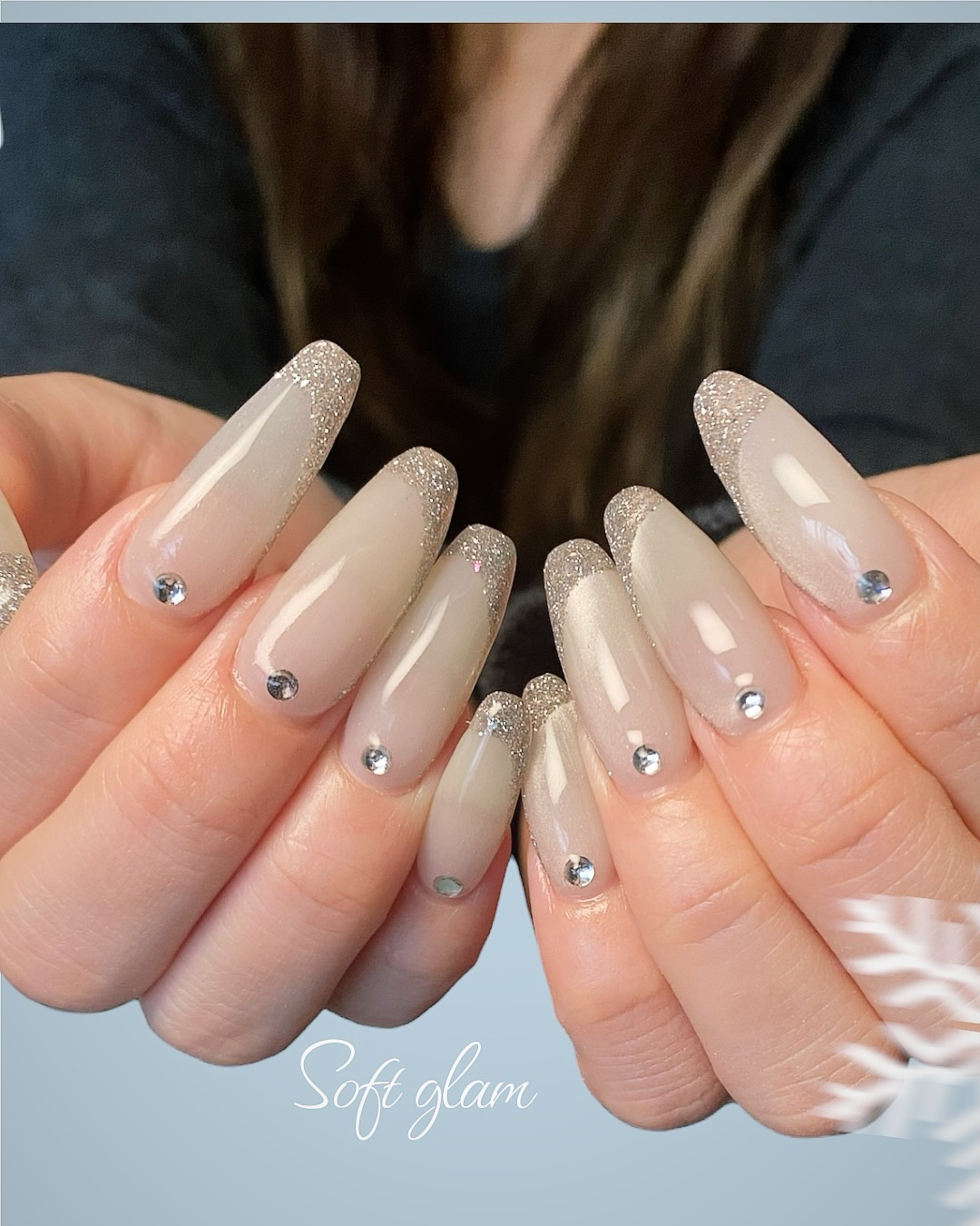 さりげないラメグラとストーンの輝きで、女子会もデートも主役級に