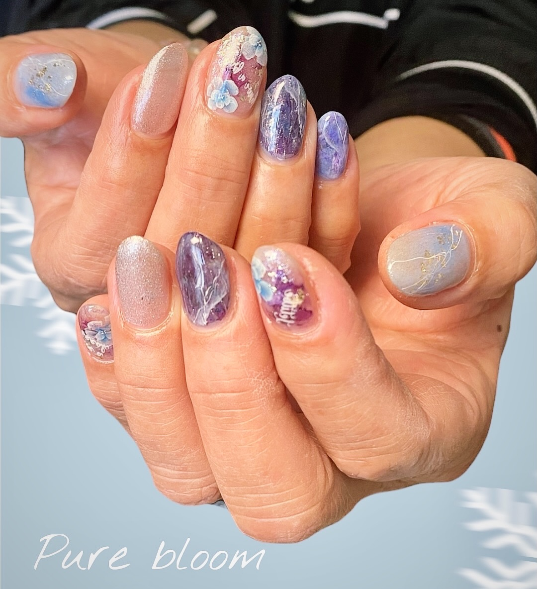 マーブルの紫がほんのり幻想的で、ブルーのお花が冬の空に映えるような美しさ…❄️