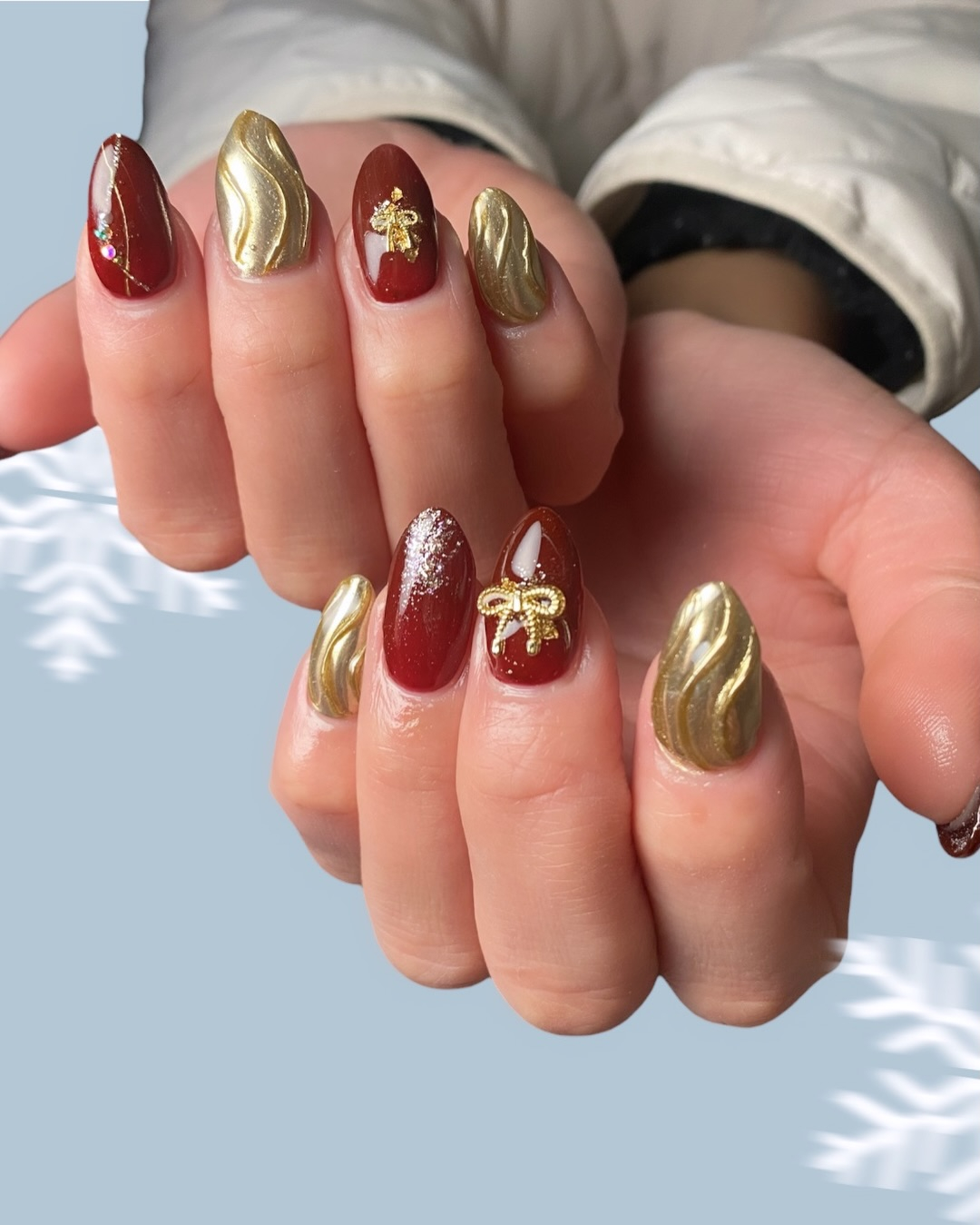寒い冬こそ、テンション上げて 寒い冬こそ、テンション上げて 成人式にむけて長さだししてレッド×ゴールドの最強コンビ リボンにラメ✨にストーンまで盛り❣️ ご予約はDMでお気軽に スキル 投稿日 2026年1月7日 ← シルバー×ブラックのクールな配色に、ハートや雪の結晶でPOP レッド・ゴールド・ブラックのカラフルコンビに、雪の結晶やラメ →