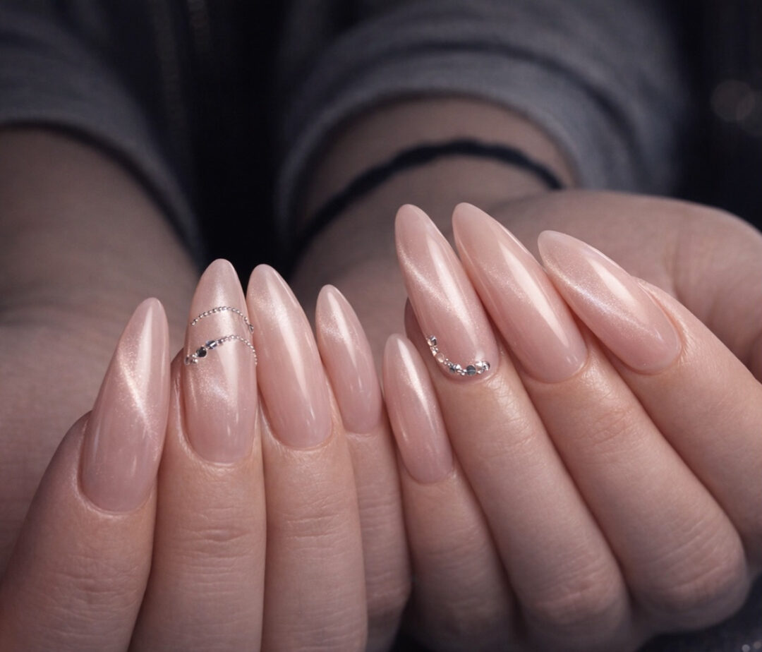 ぷるんと艶めくマグネットネイルに、きらりと光るストーンのアクセント✨